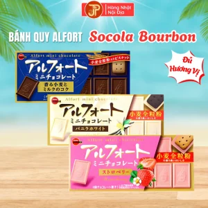 Sản phẩm có nhiều hương vị đa dạng như sô cô la đen đậm vị, sô cô la trắng ngọt dịu và dâu tây thơm nhẹ, phù hợp với khẩu vị của nhiều đối tượng khác nhau. Nhờ kích thước mini tiện lợi, bánh quy Alfort Mini phủ sô cô la Bourbon 59g rất thích hợp để mang theo khi đi học, đi làm hoặc dùng trong những buổi trà chiều cùng bạn bè và gia đình.